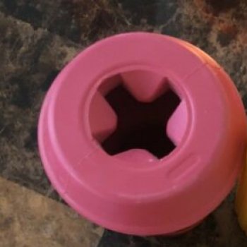 I’m glad I got this. It’s so easy to fill up with treats. And my dog has chewed the hell out of it & it still looks new. The shape makes it bounce off in unpredictable directions and adds to entertainment. Would buy again & definitely recommend