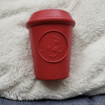 I’m always hesitant to purchase dog toys as my pooch destroys 95% of them within the first 5 minutes, but this one, which is adorable, has quickly become my pooches favorite. It’s very durable, hard, thick plastic even stronger than a Kong toy. If my dog hasn’t destroyed it yet and it’s been at least a month, then you know it’s a great toy for aggressive chewers and toy destroyers. Only complaint is there are usually a few treat pieces that are stuck broken inside and not always easy to remove. My dog literally carries her coffee cup to me daily for a “fill up”. LoL.